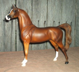 and Egyptian breeding. He's triple bred on Ofir. This grand old boy is our senior stallion. He's pensioned now in favor of the younger stallions, but his foal crops are 1985-2005. He'll get to enjoy his retirement! Breyer OF #401.