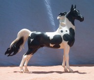1997 black tobiano American Saddlebred stallion. Firewind Supreme(m) x Firewind Bronze(m). Bred by WMHS. We are thrilled with this exciting young stallion. He's produced his first foal by one of our mares, & she's a beautiful black filly. He carries 2 crosses to Valley View Supreme,