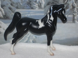 | SK Ambitious Lady 2001 black ASB mare bred by GSS. SK Supreme Ambition(m) x Lady of the Lake(m). We are very excited by this youngster! She is the first produce of both her sire and dam, and we think she's a very promising little girl! Breyer NM SM scratching foal. Open years 2005-26. |