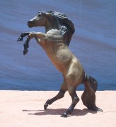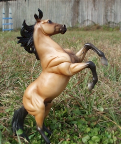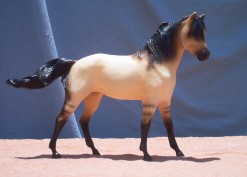 1991 buttermilk dun Kiger Mustang mare. Dun Reflecting(m) x Tawny Tigris(m). Bred by Bettor Bloodstock. Breyer OF WalMart SR Alona. Dam of Shadow's Reflection, a 1999 colt. Open Years