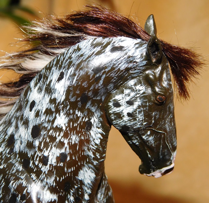 Resin: Seunta Joker Classic Akhal-Teke mare sculpted by Oleg Bazhenov Color: Appaloosa Painter: Simone Methke